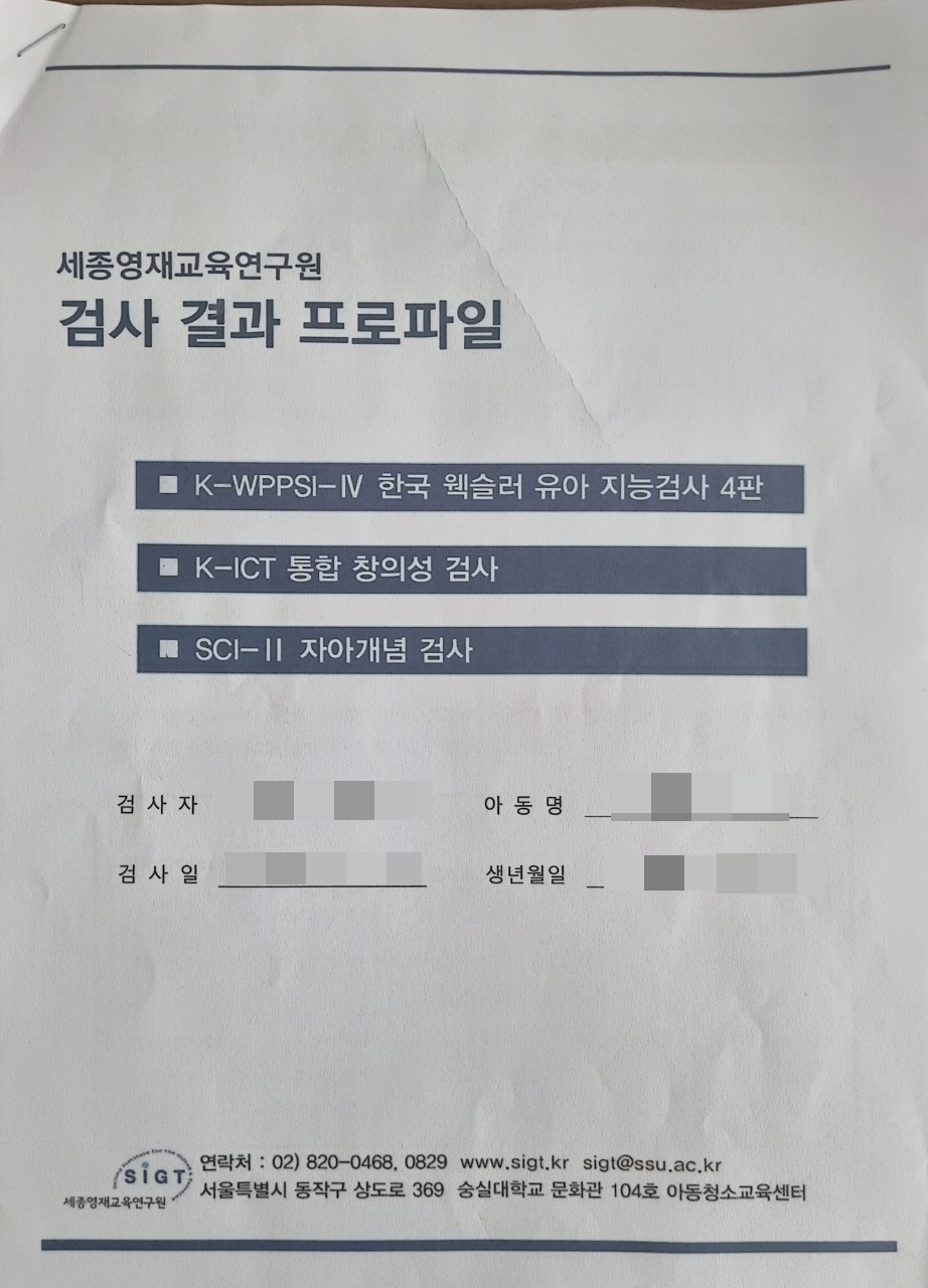 숭실대 영재교육원 웩슬러 검사 결과 본문