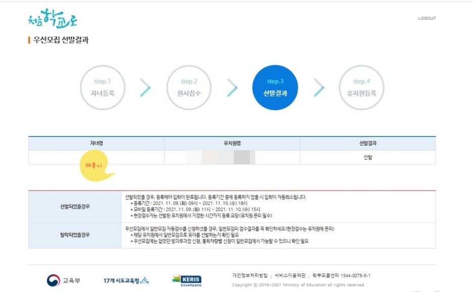 | 유치원 우선모집 선발 등록 (0) | 2021.11.09 |